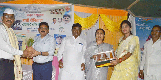 प्रभाग क्रमांक आठच्या माजी नगरसेविका अनिता सतीश सपकाळे व सामाजिक कार्यकर्ते सतीश सपकाळे यांच्या वतीने शहरातील 50 माजी सैनिकांचा शुक्रवारी सन्मान करण्यात आला. देशाच्या अमृत महोत्सवी वर्षाचे औचित्य साधून या कार्यक्रमाचे आयोजन करण्यात आले. याप्रसंगी माजी उपनगराध्यक्ष युवराज लोणारींसह मान्यवरांची उपस्थिती होती. दरम्यान, कार्यक्रमापूर्वी आमदार व पदाधिकार्यांच्या उपस्थितीत तिरंगा रॅली काढण्यात आली.