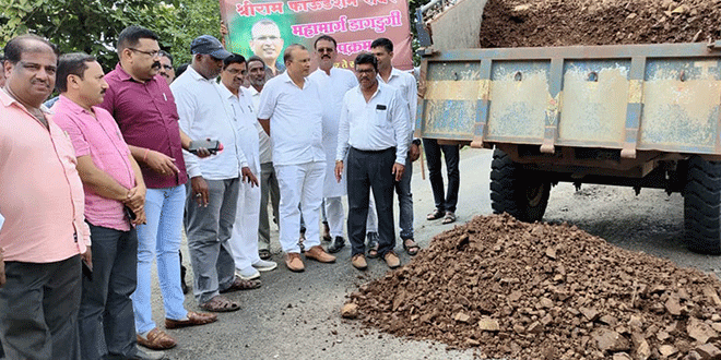 खड्डे बुजवण्यात यांनी दिले श्रमदान