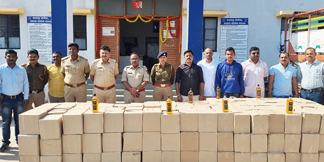 पोलिसांनी दारूच्या खोक्यांनी भरलेले पिकअप वाहन क्रमांक (एम.एच.०८-८९९५) जप्त केले असून त्यातून दारूच्या बाटल्यांनी भरलेले २५० खोक्यातील १९ लाख ८० हजारांची दारू जप्त केली आहे तर पाच लाख रुपये किंमतीची पिकअप व्हॅन जप्त केली.