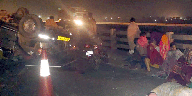 Cruiser overturns on Savalde Bridge सावळदे पुलावर क्रुझर उलटली : अपघात टाळण्याच्या प्रयत्नात ट्रक नदीपात्रात कोसळला
