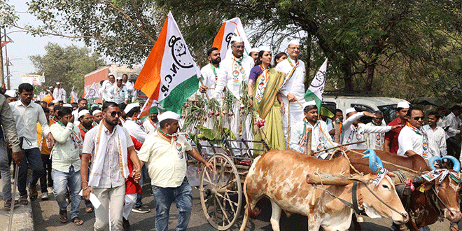 बैलगाडीद्वारे आंदोलकांचा सहभाग