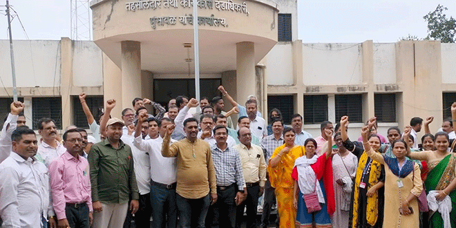 Bhusawal Division Hit by Strike: Impact on Health Care ; Shukshukat in government offices भुसावळ : जुनी पेन्शन योजना लागू करण्याच्या मागणीसाठी राज्य सरकारी कर्मचारी, निमशासकीय कर्मचारी, आरोग्य व नगरपालिका कर्मचार्यांनी राज्यभरात बेमुदत संप पुकारला आहे. भुसावळसह विभागातील शिक्षण, महसूल, पंचायत समिती, कृषी, आरोग्य विभागातील कर्मचारीदेखील मोठ्या संख्येने संपात सहभागी झाल्याने पहिल्याच दिवशी मंगळवारी शासकीय कार्यालयांमध्ये कामकाज ठप्प झाल्याने विविध कामे घेवून आलेल्या नागरीकांना आल्या पावली परतावे लागले तर संपात आरोग्य विभागातील कर्मचारीदेखील सहभागी झाल्याने आरोग्य सेवेचाही बोजवारा उडाला तर शिक्षकांच्या संपामुळे शाळांमधील विद्यार्थ्यांची संख्या रोडावल्याचे चित्र होते.