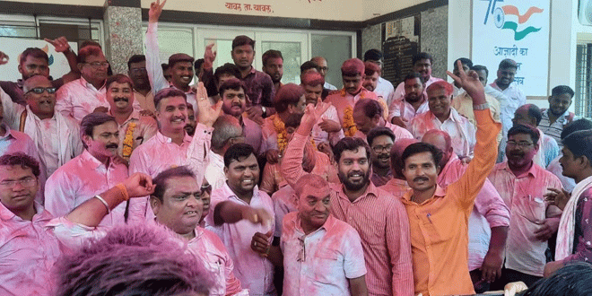 रविवारी सकाळी दहा वाजेपासून मतमोजणीला सुरूवात झाली. यात महाविकास आघाडीला मोठा धक्का बसला. महायुतीच्या पॅनलने 18 पैकी तब्बल 15 जागांवर विजय संपादन करून एकहाती वर्चस्व मिळवले असून काही मतदारसंघात पुर्नमोजणी सुरू आहे. महायुतीचे बहुमत निर्विवादपणे प्रस्थापित झाल्याने यावल येथे भाजपा कार्यकर्त्यांनी अमोल जावळे यांना खांद्यावर घेत जल्लोष करण्यास सुरूवात केली आहे.
