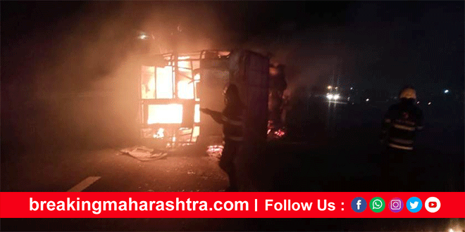 Terrible accident on Samriddhi highway ; 26 people died as a private passenger bus caught fire महाराष्ट्र हादरला ; भरधाव खाजगी लक्झरी खांबाला धडकून उलटली : 26 प्रवाशांचा होरपळून ठार