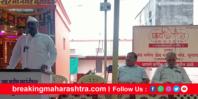 Guru who imparts knowledge about good and evil : Habap Deepak Maharaj भुसावळ : श्री जय गणेश ज्येष्ठ नागरीक संघ, सुरभी नगर भुसावळची साप्ताहिक सभा संघाचे अध्यक्ष आर.आर.बावस्कर यांच्या अध्यक्षतेखाली झाली. अरुण मांडळकर यांच्या प्रतिमेचे पूजन हभप दीपक महाराज यांनी केले. मंगला वाणी यांनी प्रमुख वक्ते हभप दीपक महाराज यांचा परीचय दिला. दहावी परीक्षेत गुणवंतांचा यावेळी भेटवस्तू देवून सन्मान करण्यात आला. संघाच्या उपाध्यक्ष जयश्री ढाके यांनी त्यांच्या नातवाने एचएससी परीक्षेत कशाप्रकारे मेहनत घेऊन यश संपादन केले याबाबत मार्गदर्शन केले. नंतर रोटरी क्लब ऑफ भुसावळ रॉयल्स आणि सिद्धेश टूर्स व ट्रॅव्हल्सच्या संचालकांनी ज्येष्ठ नागरीकांना क्षेत्रभेटी व तीर्थयात्रेसाठी सवलत सुविधा उपलब्ध करून दिल्याची माहिती दिली.