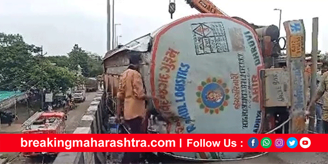 धुळ्यात टँकर पलटी होताच डिझेल लुटण्यासाठी नागरीकांची झुंंबड
