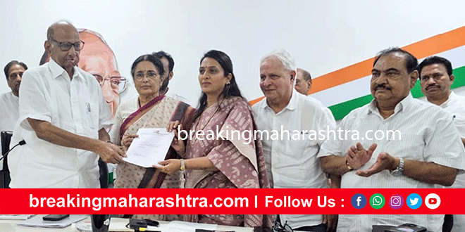 Adv.Rohini Khadse has been elected as Nationalist Congress Women’s Aghadi Regional President मुक्ताईनगर : राष्ट्रवादी काँग्रेस पक्षाच्या महिला आघाडी प्रदेशाध्यक्षपदी अॅड.रोहिणी खडसे यांची नियुक्ती करण्यात आली. मंगळवार, 29 रोजी राष्ट्रवादी प्रदेश कार्यालयात पक्षाचे राष्ट्रीय अध्यक्ष शरदचंद्र पवार यांनी अॅड.रोहिणी खडसे यांना महिला आघाडी प्रदेशाध्यक्ष पदाचे नियुक्तीचे पत्र दिले. पक्ष नेतृत्वाने आता अॅड.रोहिणी यांच्यावर मोठी जवाबदारी टाकल्यानंतर महिला कार्यकर्त्यांचा उत्साह दुणावला आहे.