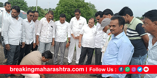 MLA Khadse angry due to poor work of Nadgaon flyover मुक्ताईनगर : मुक्ताईनगर ते बोदवड रस्त्यावरील नाडगाव येथे मध्य रेल्वेची रेल्वे क्रॉसिंग असून अलीकडेच उड्डाणपूल उद्घाटनापूर्वीच आमदार चंद्रकांत पाटील यांनी वाहतुकीसाठी खुला केला होता. यावरून राजकारण पेटले असतानाच मंगळवारी आमदार एकनाथराव खडसे यांनी पुलाच्या कामाची पाहणी केली मात्र पहिल्याच पावसात रस्त्यावरील डांबर वाहून गेल्याने आमदार खडसे यांनी तीव्र संताप व्यक्त करीत याबाबत जाब विचारला. पुलाचे काम कंत्रादारांकडून अत्यंत सुमार दर्जाचे करण्यात आल्याने अवघ्या पंधरा दिवसात रस्ता जागोजागी उखडला असून कोट्यवधींचा निधी पाण्यात गेल्याचा आरोप यावेळी करण्यात आला.