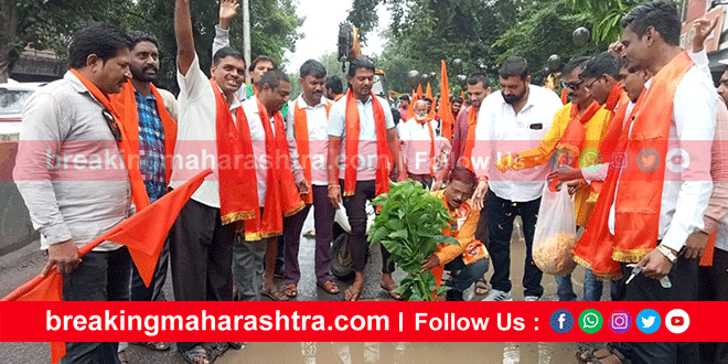 भुसावळात सेनेचे अनोखे आंदोलन : खड्ड्यांमध्ये लावले बेशरमीचे झाड
