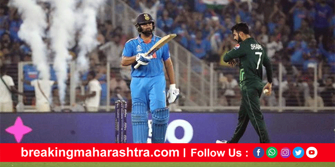 India’s hat-trick of victories : Pakistan beat Pakistan in ODI World Cup अहमदाबाद : संपूर्ण क्रिकेटविश्वाची नजर आजच्या भारत पाकिस्तान सामन्यावर लागलेली असतानाच अपेक्षेप्रमाणे भारताने पाकिस्तानवर रोमहर्षक विजय मिळवली. अहमदाबाद शहरातील नरेंद्र मोदी स्टेडियमवर यजमान भारतीय संघाने गोलंदाजीत चमकदार कामगिरी केल्यानंतर कर्णधार रोहित शर्माने पाकिस्तानी संघाला धुवून काढले. दोन बाद 191 धावांचे आव्हान भारताने लिलया पार केले व वन डे वर्ल्ड कप स्पर्धेत विजयाची हॅटट्रिक साजरी केली. वन डे वर्ल्ड कप स्पर्धेत भारताने पाकिस्तानविरुद्धची अपराजित मालिका 8-0 अशी कायम राखली. या विजयासोबत भारतीय संघ गुणतालिकेत अव्वलस्थानी पोहोचला आहे.