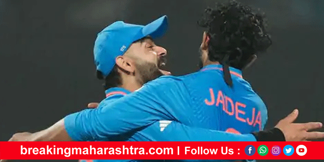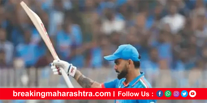 India’s ‘Virat’ wins in ODI World Cup नवी दिल्ली : भारतीय संघाने वनडे विश्वचषकात सलग आठवा विराट विजय नोंदवला आहे. गुणतालिकेत क्रमांक-1 फिनीशही निश्चित केली आहे. उपांत्य फेरीत भारताचा सामना चौथ्या क्रमांकावरील संघाशी होईल. भारताने कोलकाता येथील ईडन गार्डन्स स्टेडियमवर नाणेफेक जिंकून प्रथम फलंदाजी केली. विराट कोहलीच्या विक्रमी 49व्या शतकामुळे संघाने 50 षटकांत 5 गडी गमावून 326 धावा केल्या. कोहलीने नाबाद 101 धावा केल्या आणि सचिन तेंडुलकरच्या 49 वनडे शतकांच्या विश्वविक्रमाची बरोबरी केली. श्रेयस अय्यरने 77 धावा केल्या.