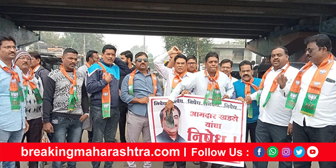 भुसावळ : भाजपचे ग्रामविकास मंत्री गिरीष महाजन यांच्या विरोधात राष्ट्रवादीचे नेते एकनाथ खडसे यांनी आक्षेपार्ह विधान केले. या विधानाचा निषेध म्हणून शहर भाजपने मंगळवारी नाहाटा महाविद्यालय चौफुलीवर खडसेंचा निषेध केला. या आंदोलनात भाजपचे प्रदेश चिटणीस अजय भोळे यांनी खडसेंच्या प्रतिमेला चप्पलांनी मारले. या आंदोलनाकडे मात्र शहर भाजपचे शहराध्यक्ष, सर्व प्रमुख पदाधिकारी, माजी नगरसेवकांनी मात्र पाठ फिरवली. नाहाटा चौफुलीवर आंदोलन झाले. या आंदोलनात प्रदेश सचिव अजय भोळे, शहर सरचिटणीस रमाशंकर दुबे, संदीप सुरवाडे, प्रदेश ओबीसी मोर्चाचे पदाधिकारी प्रवीण इखनकर, ग्रामीण विभागाचे सरचिटणीस दिलीप कोळी, युवा मोर्चाचे शहराध्यक्ष अनिरुध्द कुलकर्णी, माजी शहराध्यक्ष पवन बुंदेले, शंकर शेळके, अनुसूचित जाती मोर्चाचे शहराध्यक्ष राहूल तायडे, रवी ढगे, प्रशांत देवकर, धनराज बाविस्कर, संतोष फोकळ, चेतन सावकारे आदींसह 20 ते 22 कार्यकर्ते व पदाधिकारी होते.
