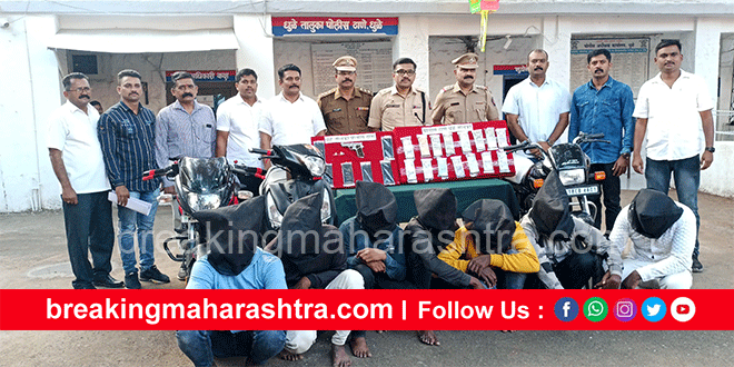 धुळे पोलिस अधीक्षक श्रीकांत धीवरे, अपर पोलिस अधीक्षक किशोर काळे, उपअधीक्षक साजन सोनवणे यांच्या मार्गदर्शनाखाली धुळे तालुक्याचे पोलिस निरीक्षक प्रमोद पाटील, हवालदार नितीन चव्हाण, हवालदार किशोर खैरनार, कुणाल पानपाटील, उमेश पवार, विशाल पाटील, राजू पावरा, कुणाल शिंगाणे, राहुल देवरे आदींनी आरोपींच्या मुसक्या बांधल्या.