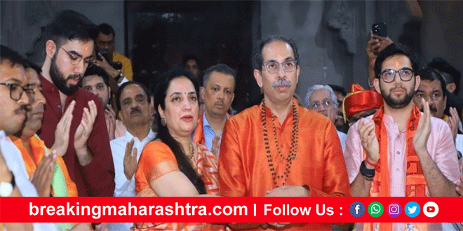The Thackeray family visited the Kalaram temple in Nashik नाशिक : नाशिकमध्ये सोमवारी उद्धव ठाकरे, रश्मी ठाकरे, आदित्य ठाकरे आणि तेजस ठाकरे आदींनी काळाराम मंदिरात जावून दर्शन घेतले. अयोध्येतील श्री राम मंदिरातील प्राणप्रतिष्ठा सोहळा पार पडल्यानंतर आता देशभरात ठिकठिकाणी रॅली, दीपोत्सव साजरा करण्यात आला. राम मंदिर प्राणप्रतिष्ठा सोहळ्याच्या निमित्ताने उद्धव ठाकरेंनी काळाराम मंदिरात दर्शन घेतले. त्याठिकाणी पूजा करून महाआरतीही केली.