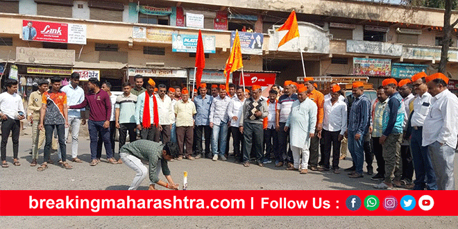 Reservation for Maratha community : Yavala Maratha community burst firecrackers and cheered यावल : मराठा आरक्षणासंदर्भात मराठा योध्दा मनोज जरांगे पाटील यांच्या आंदोलनास यश मिळाल्याबद्दल यावल तालुका सकल मराठा समाजाच्या वतीने येथील भुसावळ टी पॉईंटवर फटाके फोडून व पेढे आणि लाडू वाटून आनंदोत्सव साजरा करण्यात आला. याप्रसंगी समाज का नेता कैसा हो मनोज जरांगे जैसा हो, एक मराठा लाख मराठा, तुमचं आमचं नातं काय जय जिजाऊ- जय शिवराय या घोषणांनी परीसर दणाणला होता. याप्रसंगी माजी नगराध्यक्ष अतुल पाटील यांनी मनोज जरांगे यांचे गेल्या सहा महिन्यापांसून सुरू असलेल्या आंदोलनाला यश मिळाल्याचे सांगून मराठा समाजाच्या गेल्या अनेक वर्षापासूनच्या प्रलंबित मागणीला न्याय मिळाल्याची भावना व्यक्त केली.