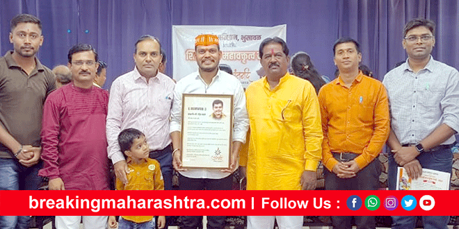 Gosevak Rohit Mahale honored by Antaranad in Bhusawal भुसावळ : अंतर्नाद प्रतिष्ठान आयोजित जिल्हास्तरीय वक्तृत्व स्पर्धेच्या बक्षीस वितरण कार्यक्रमात विविध क्षेत्रात उल्लेखनीय कार्य करणार्यांचा गौरव करण्यात आला. अंतर्नाद प्रतिष्ठानचे संदीप पाटील व सर्व पदाधिकारी या कार्यक्रमास उपस्थित होते. महाराष्ट्र राज्य मानद पशू कल्याण अधिकारी म्हणुन नियुक्ती झाल्याबद्दल यावेळी महाले यांचे कौतुक करण्यात आले.