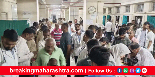 100 policemen poisoned by food at Dhule Police Training Centre धुळे  : धुळे पोलीस प्रशिक्षण केंद्रातील सुमारे शंभरावर पोलीस बांधवांना गुरुवारी रात्री जेवणातून विषबाधा झाल्यानंतर सर्वांना तातडीने उपचारासाठी भाऊसाहेब हिरे शासकीय वैद्यकीय महाविद्यालयात दाखल करण्यात आले. त्यातील सुमारे पाचवर पोलिसांना अति त्रास होत असल्याची माहिती हिरे वैद्यकीय महाविद्यालयाचे अधिष्ठाता डॉक्टर सयाजीराव भामरे यांनी दिली. याबाबतची माहिती मिळताच जिल्हा पोलीस अधीक्षक श्रीकांत धीवरे यांनी बाधीत पोलिसांची भेट घेत त्यांची विचारपूस केली.