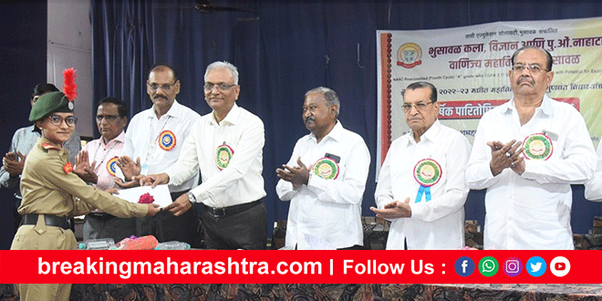 The quality of the students determines the quality of the college : Prof. Vice-Chancellor Dr. ST. Ingle भुसावळ : विद्यार्थी हा महाविद्यालयाचा केंद्रबिंदू असतो. विद्यार्थ्यांच्या गुणवत्तेनुसार महाविद्यालयाचा दर्जा ठरतो, असे मत कवयित्री बहिणाबाई चौधरी उत्तर महाराष्ट्र विद्यापीठ जळगावचे प्रकुल गुरु डॉ.एस.टी.इंगळे यांनी व्यक्त केले. भुसावळ येथे कला, विज्ञान आणि पु. ओं. नाहाटा वाणिज्य महाविद्यालयात आयोजित वार्षिक पारितोषिक वितरण समारंभप्रसंगी डॉ.इंगळे बोलत होते. त्यांनी विद्यार्थ्यांच्या सर्वांगीण विकासासाठी पुस्तकी ज्ञानाबरोबरच महाविद्यालयात राबविल्या जाणार्या एनएसएस, एनसीसी, स्पोर्ट्स, सांस्कृतिक कार्यक्रम इत्यादी महत्त्वाचे असतात, अशी माहिती दिली.