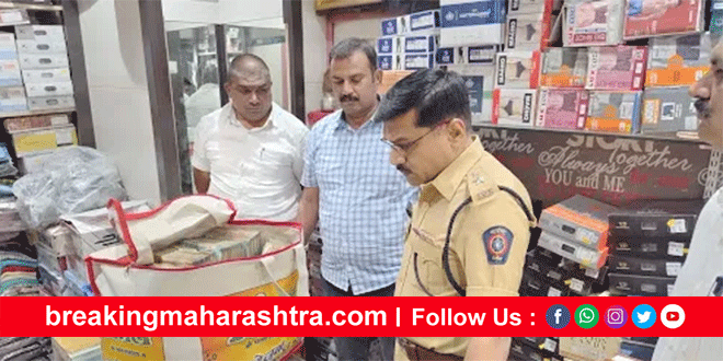55 lakh cash seized from cloth shop in Dhule धुळे : धुळ्यातील आग्रा रोडवरील एका कापड दुकानातून पोलिसांनी सोमवारी सुमारे 55 लाखांची रोकड जप्त केल्याने खळबळ उडाली आहे. रोकडबाबत संबंधिताला योग्य तो खुलासा करता न आल्याने ही रोकड जप्त करीत तिघांना ताब्यात घेण्यात आले आहे.