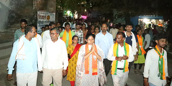 MP Rakshatai Khadse interacted with voters in Muktainagar Taluka मुक्ताईनगर : रावेर लोकसभा महायुती व भाजपाच्या उमेदवार खासदार रक्षाताई खडसे यांनी मुक्ताईनगर तालुक्यातील मौजे चांगदेव व हरताळा गावात सोमवारी दिवसभरात प्रचार दौरा करीत भाजपाला मतदानाचे आवाहन केले. गेल्या दहा वर्षात केलेल्या विविधांगी विकासकामांच्या जोरावर मतदारांनी पुन्हा भाजपाला कौल देवून पंतप्रधान नरेंद्र मोदी यांना तिसर्यांदा पंतप्रधान करावे, असे आवाहन त्यांनी केले.