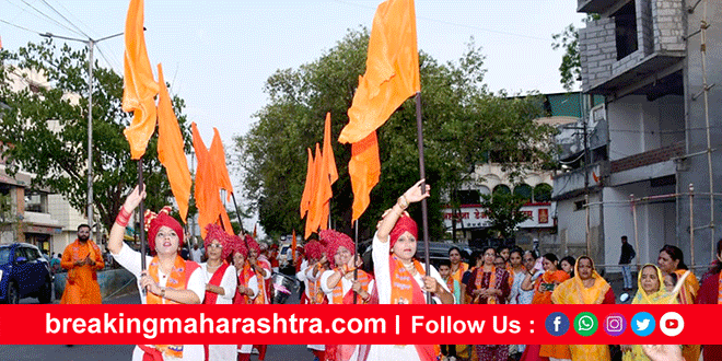 A procession started on the occasion of Parashuram Jayanti in Bhusawal भुसावळ : परशुराम जयंतीनिमित्त शुक्रवारी शहरात काढण्यात आलेल्या शोभायात्रेतील कल्याण येथील ढोल पथकासोबतच महिलांचे लेझीम पथक, यष्टी पथक व ध्वज पथक यांनी येणार्या जाणार्यांचे लक्ष वेधून घेतले. ब्राम्हण समाजातर्फे काढण्यात आलेल्या शोभायात्रेत मोठ्या प्रमाणावर समाज बांधव व महिलांचा समावेश होता.