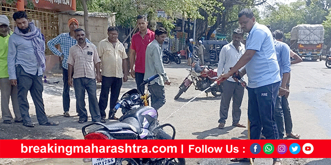 यावेळी पालिकेच्या अग्निशमन केंद्राच्या बंबाला पाचारण करण्यात आल्यानंतर तत्काळ गाडीवर पाण्याचा मारा करण्यात आल्याने धूर बंद झाला. दुचाकीतून धूर निघत असल्याने संबंधित गाडी चालकाने बॅटरीकडील वायरिंगचा बॉक्स ओपन केला व पाणी मारल्याने मोठाच अनर्थ टळला.