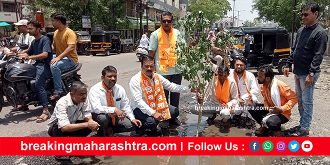 भुसावळात फुटलेल्या पाईप लाईनच्या खड्ड्यात शिवसेनेने लावले बेशर्मीचे झाड