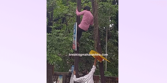 भुसावळ पालिकेकडून अनधिकृत फलकांसह होर्डींग्जवर कारवाई