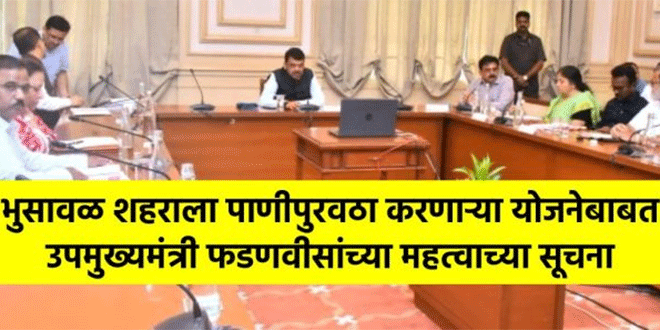 Call for immediate tender for phase two of Amrit Yojana in Bhusawal city भुसावळ (9 ऑगस्ट 2024) : भुसावळ शहरातील अमृत योजना टप्पा – 2 आणि वरणगाव येथील पाणीपुरवठा योजनेच्या पार्श्वभुमीवर गुरूवारी उपमुख्यमंत्री देवेंद्र फडणवीस यांच्या उपस्थितीत मुंबईतील सह्याद्री अतिथीगृहात दुपारी 2.30 वाजता तातडीची बैठक घेण्यात आली. यात भुसावळच्या अमृत योजना टप्पा दोनची निविदा काढून ही योजता तात्काळ पूर्ण करण्याचे आदेश उपमुख्यमंत्री फडणवीस यांनी अधिकारी, सचिवांना दिले. या बैठकीला आमदार संजय सावकारे व अन्य अधिकारी उपस्थित होते.