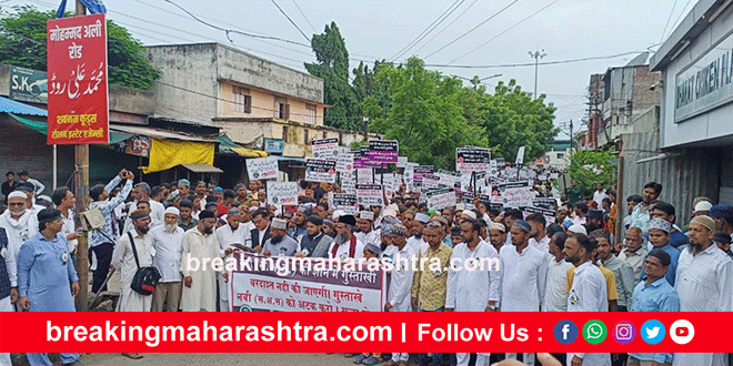 Muslim brothers’ march against Ramgiri Maharaja in Bhusawal भुसावळ (24 ऑगस्ट 2024)  सरलाबेट, ता.वैजापूर येथील रामगिरी गुरु नारायण गिरी महाराजांनी पंचाळे, ता.सिन्नर येथील प्रवचनात मोहम्मद पैगंबर यांच्या जीवनाविषयी अपशब्द वापरून मुस्लीम समाजबांधवांच्या भावना दुखावल्या आहेत. रामगिरी महाराजांविरोधात कारवाई करावी, या मागणीसाठी शहरातील हजारो मुस्लीम बांधवांनी एकत्र येत शुक्रवारी तहसील कार्यालयावर मूक निषेध मोर्चा काढला. मोर्चेकर्‍यांच्या हातात निषेधाचे मोठ्या प्रमाणावर फलक होते. शुक्रवारी दुपारी दोन वाजता रजा टॉवरपासून मोर्चाला सुरूवात झाली. डॉ.बाबासाहेब आंबेडकर पुतळा, बसस्थानक, बाजारपेठ, गांधी पुतळामार्गे मोर्चा तहसील कार्यालयात पोहोचल्यानंतर नायब तहसीलदारांनी निवेदन देण्यात आले.