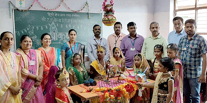 भुसावळ : हिंदी सेवा मंडल संचलित श्री.र.नं.मेहता विद्या मंदिरात श्रीकृष्ण जन्माष्टमी महोत्सवाचे आयोजन करण्यात आले. महोत्सवात विविध स्पर्धांचे आयोजन करण्यात आले होते. चित्रकला, मुकुट सजावट, मटकी सजावट, गीत गायन (कृष्ण भजन) राधाकृष्ण युगल संवाद, राधाकृष्ण वेशभूषा, रास गरबा या स्पर्धांचे आयोजन करण्यात आले. चित्रकला स्पर्धेमध्ये भगवान राधाकृष्ण यांच्या जीवनावर आधारित चित्रांमध्ये विद्यार्थ्यांनी उत्कृष्टपणे रंगकाम केले. मुकुट सजावटमध्ये विद्यार्थ्यांनी अतिशय मनमोहक भगवान श्रीकृष्णाचा मुकुट विविध साहित्याचा वापर करून तयार केला. भगवान श्री कृष्ण जन्माष्टमी प्रसंगी विद्यार्थ्यांनी राधाकृष्ण यांची वेशभूषा धारण केली होती. विद्यार्थ्यांनी याप्रसंगी गरबा यामध्ये सहभाग घेऊन श्रीकृष्ण जन्मोत्सवाचा आनंद साजरा केला. विद्यालयाच्या प्रधानाध्यापिका रिता शर्मा व शिक्षक-शिक्षकेतर कर्मचार्यांनी परिश्रम घेतले.