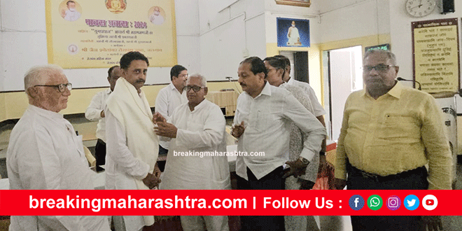 Rabindra Nimani as President of Sri Jain Shwetambar Khandesh Terapanthi Sabha भुसावळ (30 ऑगस्ट 2024) : शहरातील सामाजिक कार्यकर्ते रवींद्र लालचंदजी निमाणी यांची श्री जैन श्वेतांबर खान्देश तेरापंथी सभेच्या अध्यक्षपदी बिनविरोध निवड करण्यात आली. साध्वीश्री प्रबलयशानी यांच्या उपस्थितीत अणुव्रत भवन, जळगाव येथे झालेल्या सर्वसाधारण सभेत ही निवड झाली. निवडीचे पत्र वर्तमान मंत्री सुरजमल सूर्या यांनी वाचवून दाखविले.