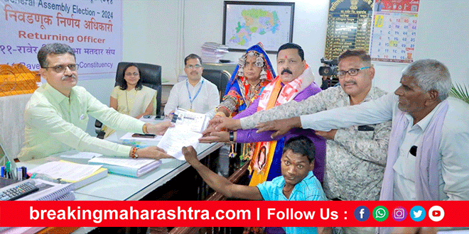 प्रहार जनशक्ती पक्ष, परिवर्तन महाशक्तीचे अधिकृत उमेदवार अनिल छबिलदास चौधरी यांनी मोठे शक्ती प्रदर्शन न करता सामाजिक संदेश देत रक्तदान करून शेतकरी, दिव्यांग, कामगार, महिला, तरुण यांनासोबत घेऊन आपला उमेदवारी अर्ज सोमवारी रावेर तहसीलदार यांच्याकडे दाखल केला.