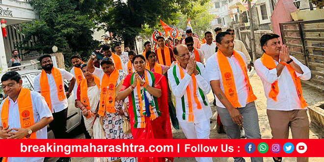 जळगाव (10 नोव्हेंबर 2024) : शहराला सुरक्षित करण्यासाठी मी संपूर्ण ताकदीनिशी प्रयत्नशील राहील, असे प्रतिपादन जयश्री महाजन यांनी रविवारी प्रचार रॅली दरम्यान प्रभाग क्रमांक 8 मधील महिलांनी व्यक्त केलेल्या अपेक्षेदरम्यान केले. रविवार, 10 रोजी सकाळच्या सत्रात महाविकास आघाडीच्या उमेदवार जयश्री महाजन यांनी प्रभाग क्रमांक 8 मध्ये प्रचार फेरी काढली होती. सकाळी भोईटे नगरमधील गणपती मंदीरात दर्शन घेऊन प्रचार फेरीचा शुभारंभ झाला. त्यानंतर प्रेमनगर परिसर, मुक्ताईनगर, गुजराल पेट्रोलपंप परिसर या मार्गे दादावाडी येथील श्रीराम मंदीरात प्रचार फेरीची समाप्ती झाली.