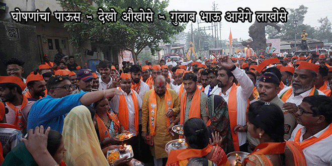 ‘देखो औखोसे – गुलाब भाऊ आयेंगे लाखोंसे’ , ‘लाडक्या बहिंचे लाडके भाऊ – गुलाब भाऊ’, ‘सर्वात दमदार – आमचे गुलाब भाऊंच आमदार, ’ जय भवानी – जय शिवराय आणि शिवसेना प्रमुख बाळासाहेब ठाकरे झिंदाबाद च्या घोषानानी नागरिकांचे लक्ष वेधले गेले. फटाक्यांची आतषबाजी, महिलंचे 100 दिव्यांनी एकाचवेळी केले औक्षण, 2 वर्षाच्या कृष्णवी नारखेडे या चिमुरडीने गुलाबपुष्प देवून गुलाब भाऊंचे केले स्वागत केले तर 8 वीत जाणार्या पियुष नारखेडे या मुलाने गुलाब भाऊंचे चित्र रेखाटून त्याची प्रतिमा भेट गुलाब भाऊना दिली.