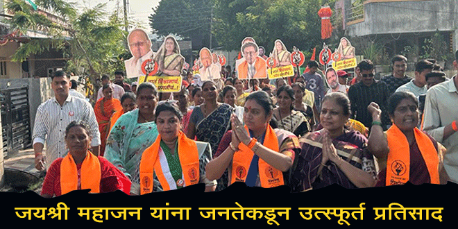 शहराच्या विविध भागात जयश्री महाजन यांच्या प्रचारासाठी काढलेल्या प्रचार रॅलीत सहभागी नागरिकांचा जोश, कार्यकर्त्यांचा उत्साह आणि ‘विकासाची साथ’ या घोषणांनी शहरातील वातावरणात नवी चैतन्याची लहर निर्माण झाली आहे. जयश्री महाजन यांच्या शहर विकासाच्या अजेंडाला आता जनतेतून भक्कम पाठबळ मिळत असून, त्यांच्याकडे शहरातील आगामी नेतृत्व करणारा एक मजबूत उमेदवार म्हणून बघितले जात आहे.